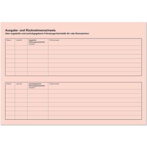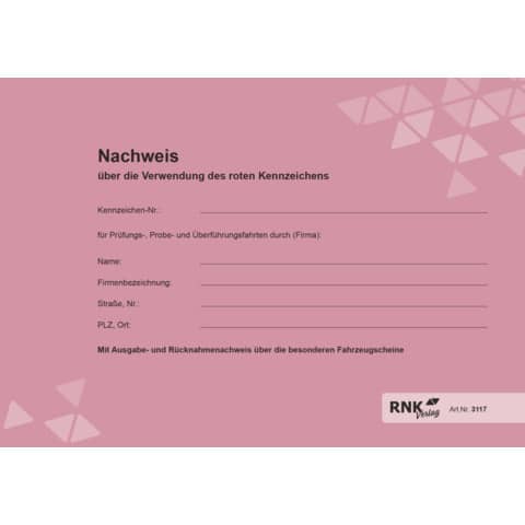 RNK 3117 Nachweisheft für rote Kennzeichen DIN A5 quer / 8Blatt